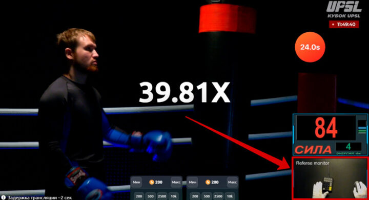 Все события транслируются в прямом эфире с задержкой приблизительно в две секунды. Расчет пари происходит после фиксации результата подхода к груше — этим занимается рефери, руки которого показаны в правом нижнем углу.