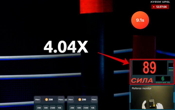 Если пари не было продано до момента удара, его исход зависит от показателя кгс. Он отображается над судейским монитором.
