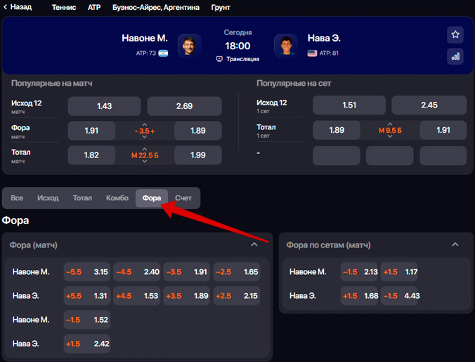 Фора позволяет работать не только с итогом, но и с характером встречи. Она часто используется в ситуациях, когда предвидится уверенная победа фаворита или плотная борьба без крупного преимущества.