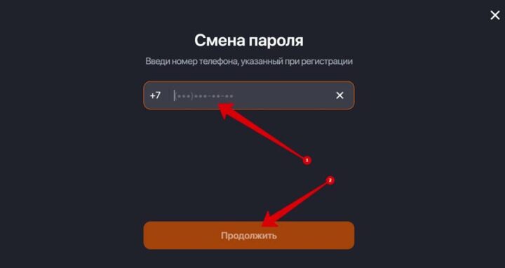 - Ввести привязанный к профилю телефон и нажать на «Продолжить».